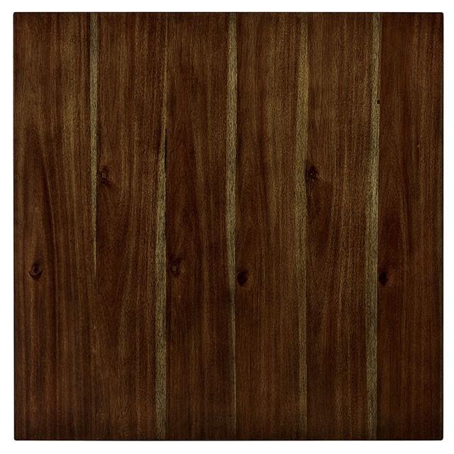 Traditional curved wood ladder-back chairs accompany this classic table, all finished in a rich walnut to darken and enchance their matching wood grain patterns. The cozy square table top makes efficient use of limited space. A practical gem!