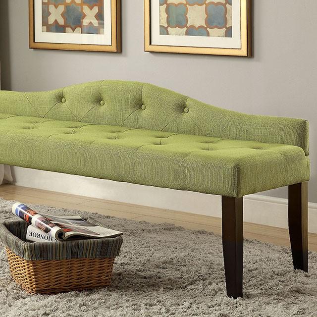 Love your bedroom even more with this versatile camelback bench, which can also serve as the footboard at the end of the bed. Upholstered in crocodile leatherette for a luxurious texture, it features button tufting and is available in three neutral colors for contemporary spaces.