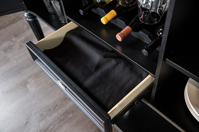 Table + 6 Chairs, Glam, Fabric, Solid Wood, Wood Veneer, Others, Upholstered Seats, Turned Fluted Legs, Silverware Tray Storage & Wine Rack on Server